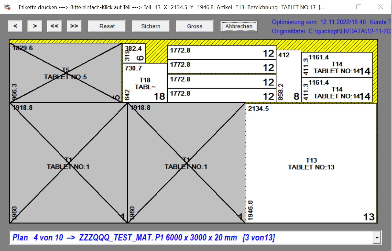 Durch berühren eines Teils wird die dazu passende Etikette gedruckt.Dafür braucht es ein Etikettendrucker der einzelne Etiketten druckt. Die abgearbeiteten Teile werden mit einem Kreuz markiert.